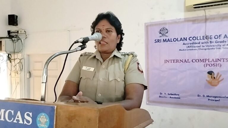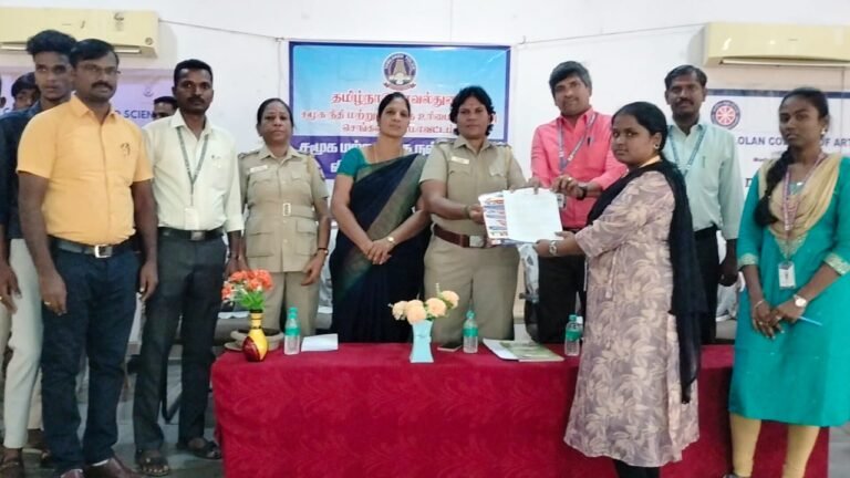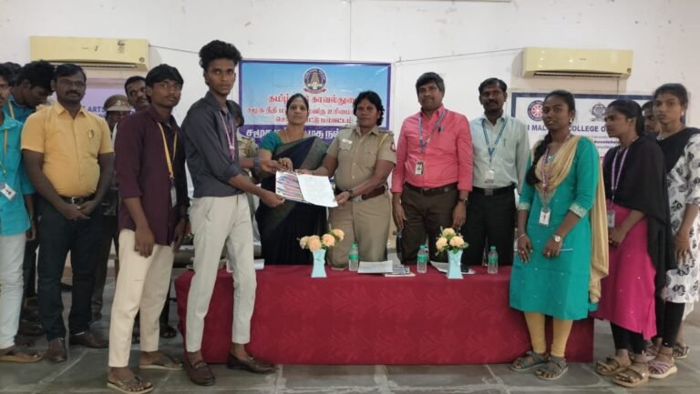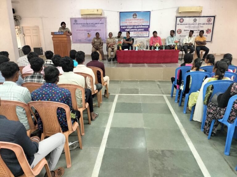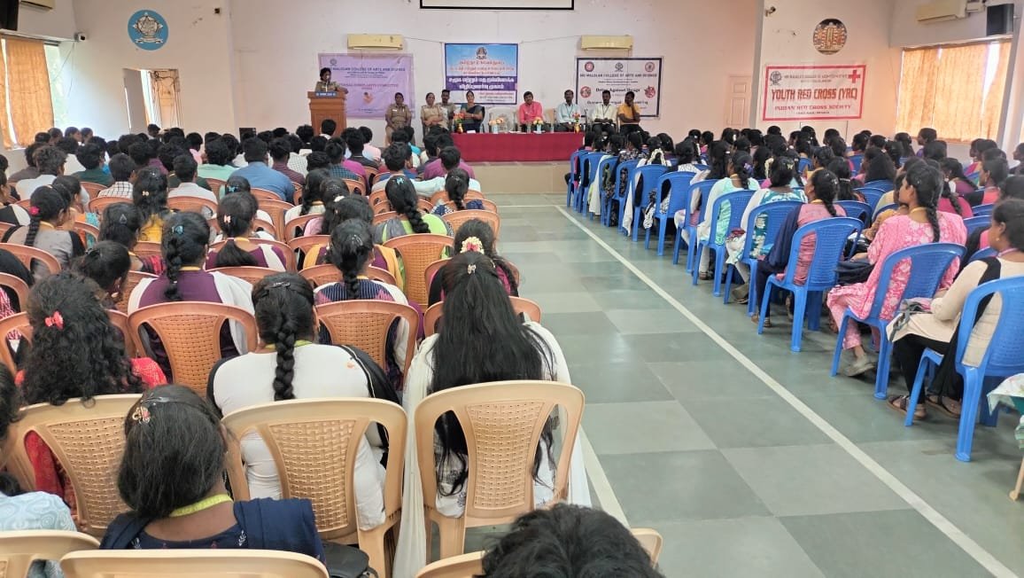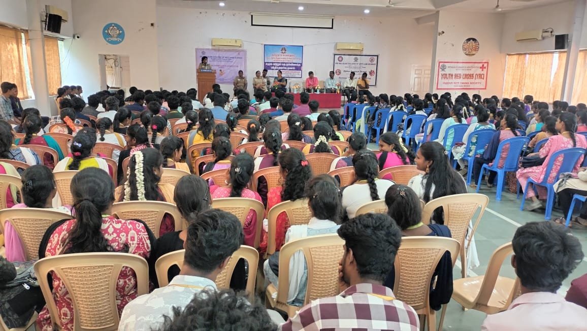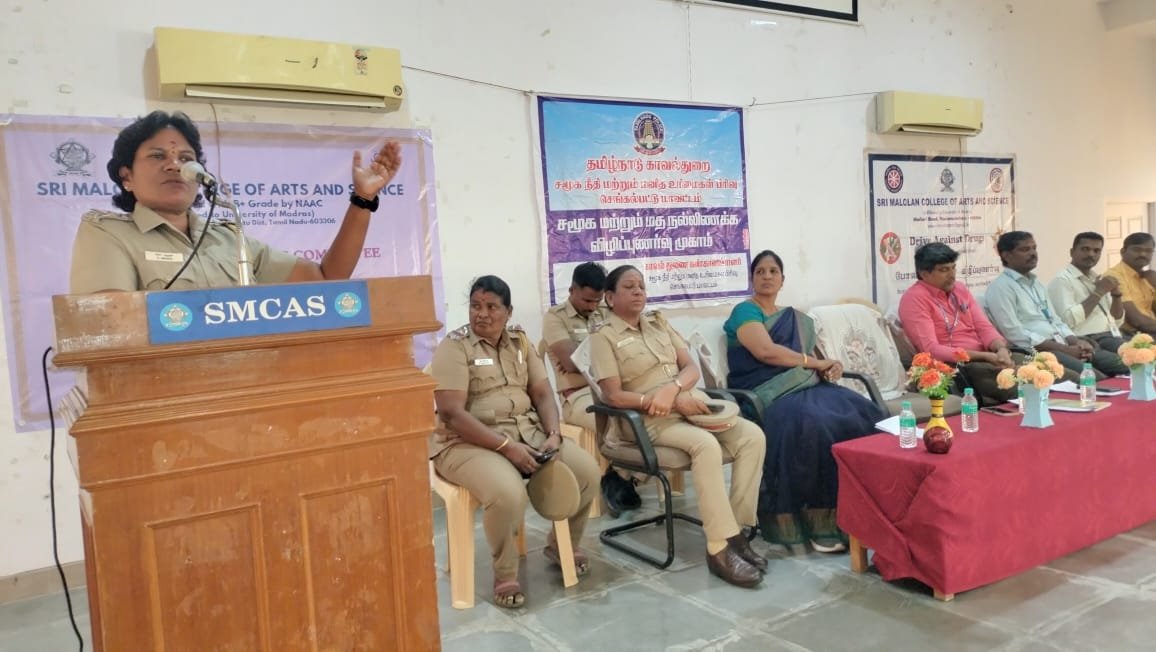 கல்லூரி இயக்குநர் முனைவர் உ. சுபத்ரா மற்றும் கல்லூரி முதல்வர் த. முருகானந்தம் ஆகியோர் தலைமை தாங்கினர். கல்லூரி துணை முதல்வர் பாபு அவர்கள் கலந்து கொண்டார்.முனைவர் பா.அமுல் சோபியா வரவேற்றார். இந்த நிகழ்ச்சியில் காவல்துறை உதவி – ஆய்வாளர் அமுதா மாணவர்களிடையே பேசும்போது, போதைப்பொருள்,பெண்களுக்கு எதிரான பாலியல் வன்கொடுமைகள், ஆதிதிராவிடர் மற்றும் பழங்குடி மாணவர்களுக்கு அரசு வழங்கி வரும் கல்விச் சலுகைகள் குறித்தும் பேசினார். கைப்பேசி, முகநூல், புலனக் குழுக்களில் பெண் குழந்தைகள் தங்களது புகைப்படம் வைப்பதைத் தவிர்க்க வேண்டும் என்று அறிவுறுத்திய உதவி ஆய்வாளர் அமுதா சமூக குற்றங்களில் எவரேனும் ஈடுபட்டால் உடனடியாக புகார் தெரிவிக்க அவசர உதவி எண் 100, பாலியல் குற்றங்கள் தொடர்பாக 1098,சைபர் குற்றங்களுக்கு 1930 போன்ற எண்களைத் தொடர்பு கொண்டு பயன் பெறலாம் என்றும் அவர் கூறினார்.இந்த நிகழ்ச்சியில் சுமார் 300 மாணவர்கள் கலந்து கொண்டனர். உடற்கல்வி பேராசிரியர் முரளி அவர்கள் நன்றி கூறினார்.