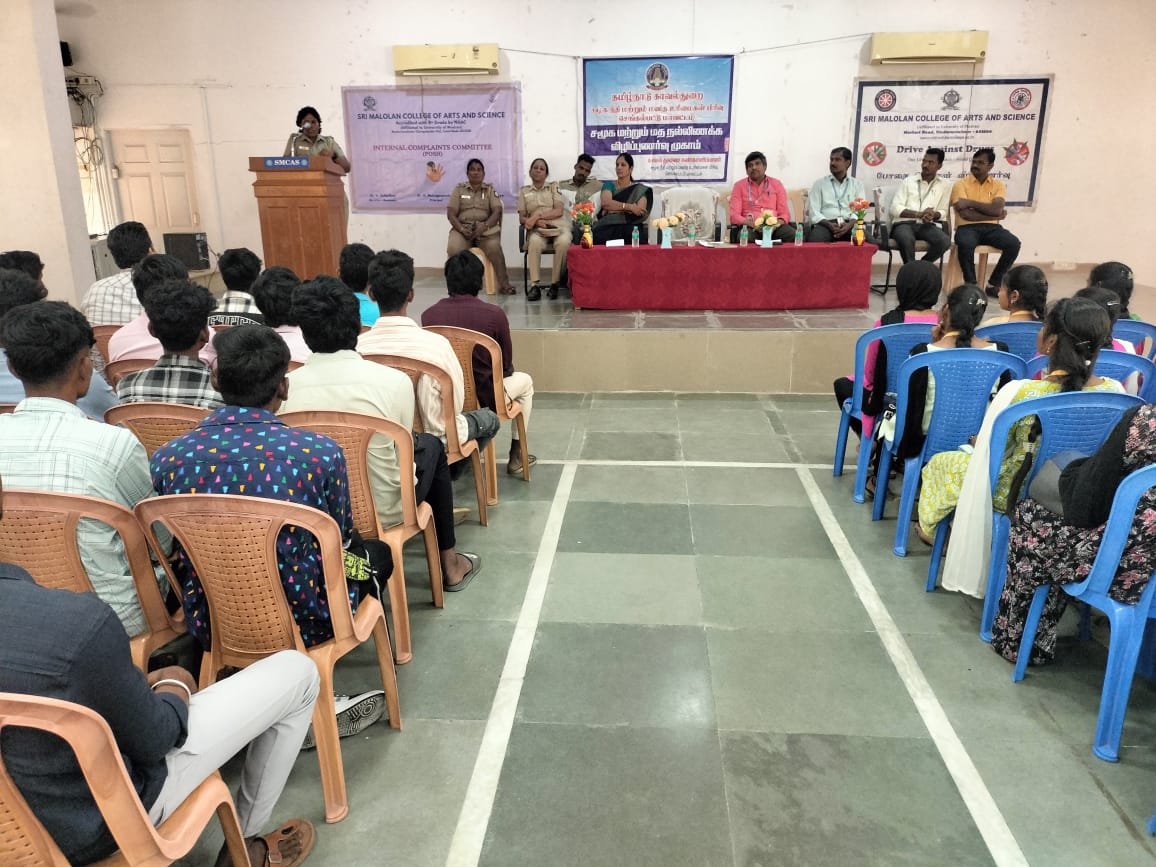 கல்லூரியின் உள் புகார்க் குழுவும் போதை தடுப்பு விழிப்புணர்வு குழுவும் இணைந்து 12.12.25 அன்று நடைபெற்ற கல்லூரி மாணவர்களுக்கான விழிப்புணர்வு நிகழ்ச்சிக்கு